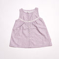 Let your little one bloom in the calm charm of Velvet, a sleeveless baby dress that’s all things gentle, joyful, and oh-so-cute. Made with 100% organic cotton, it features a soft lavender base with an all-over print of dainty garden florals. The dainty lace trim along the yoke and the classic front button detailing add a timeless touch. Whether it’s a stroll in the park or a cozy day indoors, this dress keeps things breezy, comfy, and full of pretty playtime vibes.